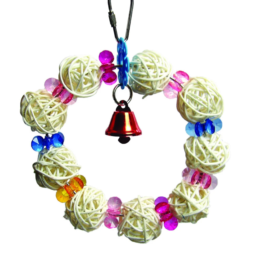 A&E Cage Company Happy Beaks Munch Ball Swing Bird Cage Toy is a great toy for birds that love to play. It encourages your bird’s natural instinct to forage and play with its’ colorful and fun design. It will keep your pet entertained as well as giving it the exercise it needs. This will keep your bird alert, happy, and healthy.Toys offer birds to play which help foster better mental health and independence. It is made with small, vine balls with colorful plastic star pieces, and a small bell for your bird to play with. There are small openings in each ball where you can add your bird’s favorite treat for extra foraging fun. It is made with small, vine balls with colorful plastic star pieces, and a small bell for your bird to play with. There are small openings in each ball where you can add your bird’s favorite treat for extra foraging fun.