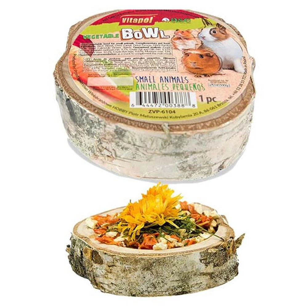 A&E Cage Company Vitapol Wooden Vegetable Bowl. These bowls are filled to the brim with goodies! Your small animal is going to be thrilled with the delicious helping of snacks in this wood bowl.