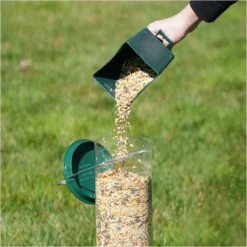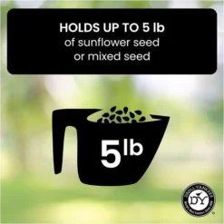 The feeder’s squirrel-proof design ensures less seed waste, which means money saved and fewer messes on the ground. Plus, the large 5 lb seed capacity ensures you won’t have to worry about birds emptying your feeder too quickly during peak feeding times. Convenient internal baffles also help to keep seed flowing freely to the ports as birds feed.