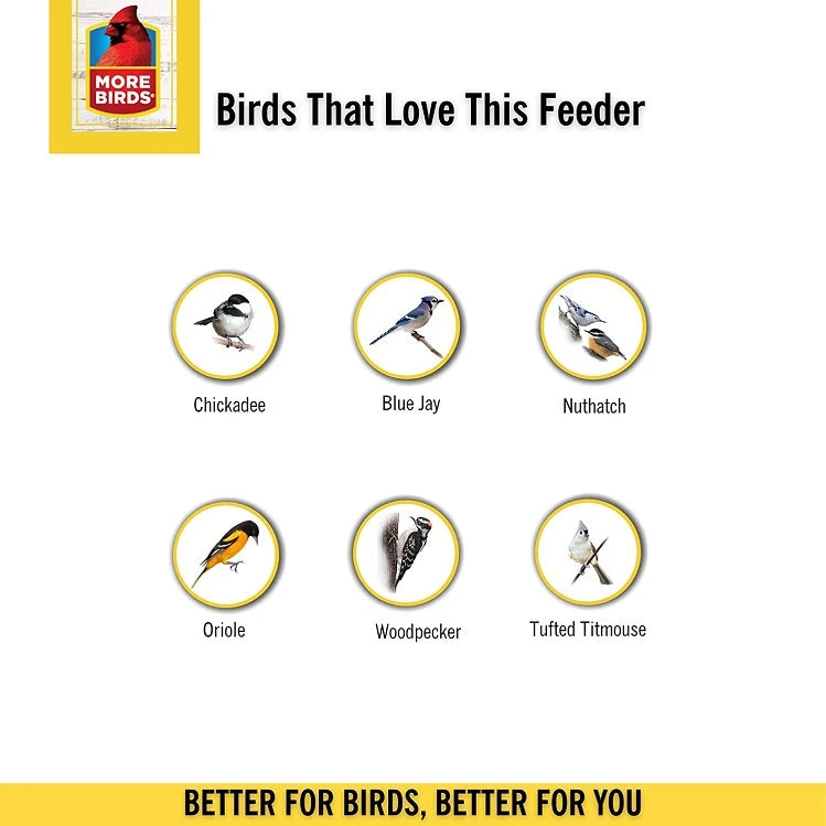 Birds that love this product: Nuthatches, Woodpeckers, Chickadees, Tufted Titmouse, Orioles, Blue Jays