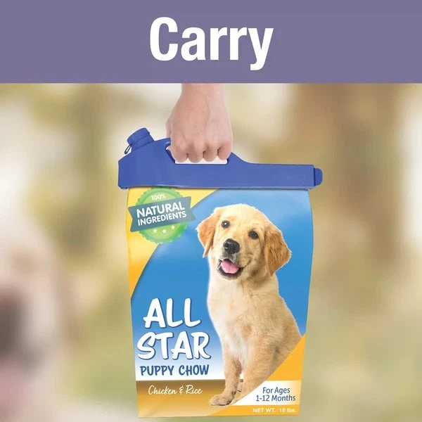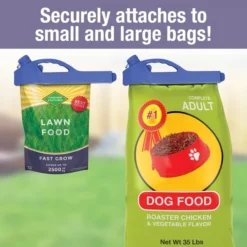Carry, Pour, & Store: The Handle It Bag Clip is an all-in one solution for storing and using big bulky bags of seed, feed, or fertilizer! Carrying bags of feed or fertilizer is now easy with the built in handle. A built-in funnel and pour spout enable easy precision pouring to reduce mess. Two point latching system and screw cap ensure a tight closure so that you can easily seal and store your bags without the need for bulky, stationary storage bins.