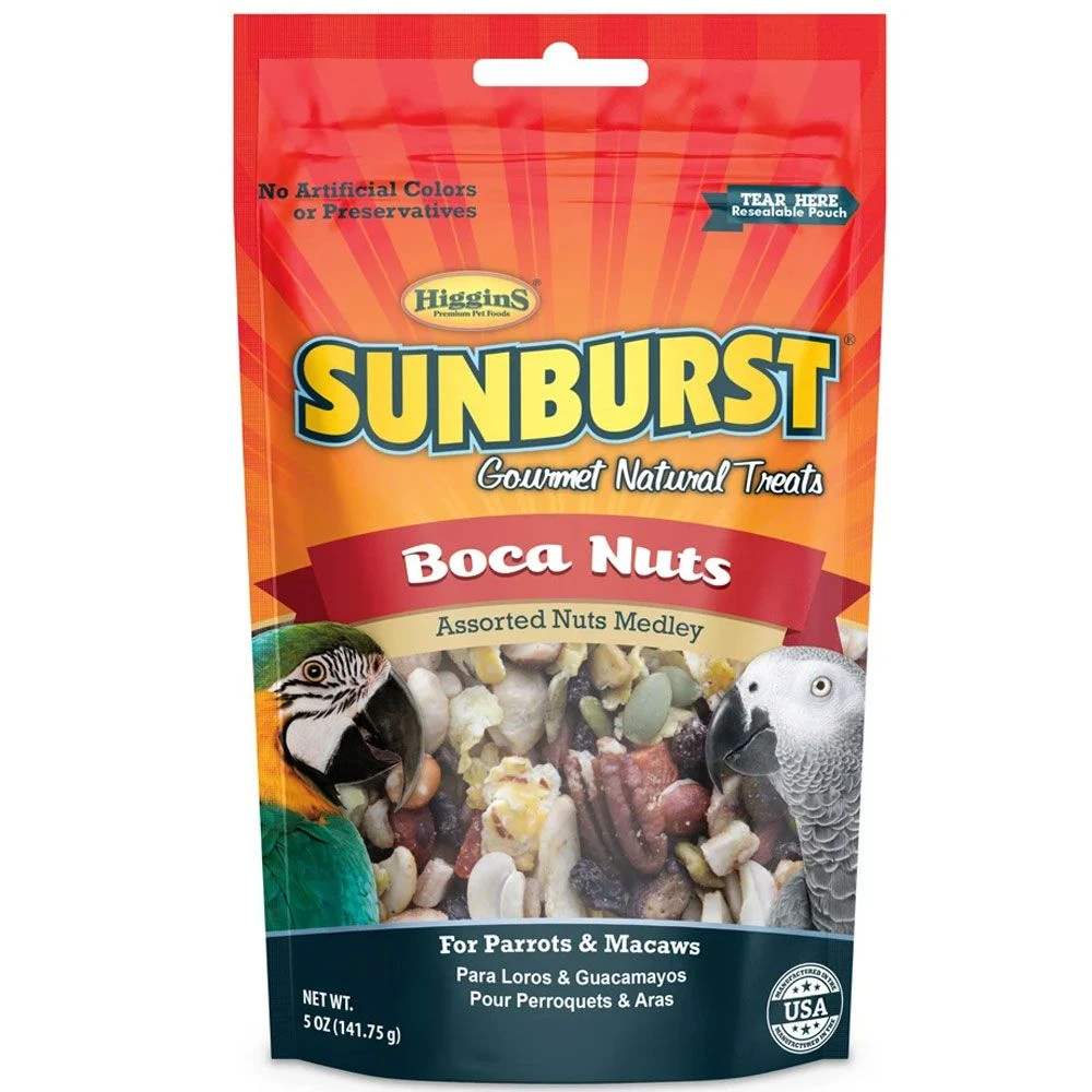 Higgins Sunburst Boca Nuts Gourmet Treats are an assortment of fun, healthy, natural snack mixes that supplement your pet’s regular diet. Boca Nuts for Parrots and Macaws is a blend of assorted, fancy, shelled nuts with premium dried fruits and more to add variety to your pet’s daily diet.