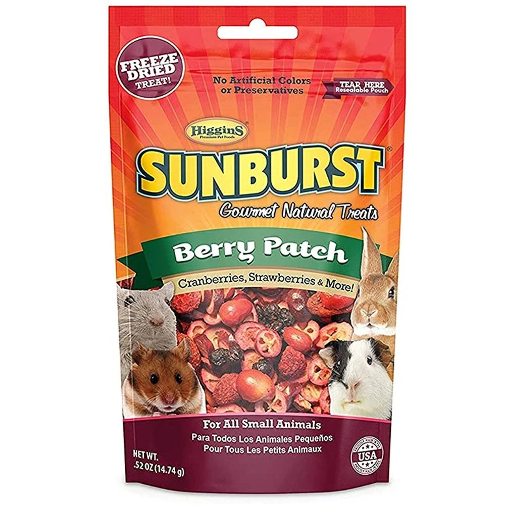 Higgins Sunburst Freeze Dried Fruit Berry Patch Bird Treats are an assortment of all natural, whole-food, fun treats that companion small animals enjoy. These healthy treats are free of added sugars, sulfites, preservatives, gluten and GMO’s. Mixed berries are harvested and freeze dried at optimal ripeness to capture the best, natural flavors. Great for all small animal herbivores and omnivores including Mice, Rats, Hamsters, Gerbils, Sugar Gliders, Rabbits, Guinea Pigs and Chinchillas!