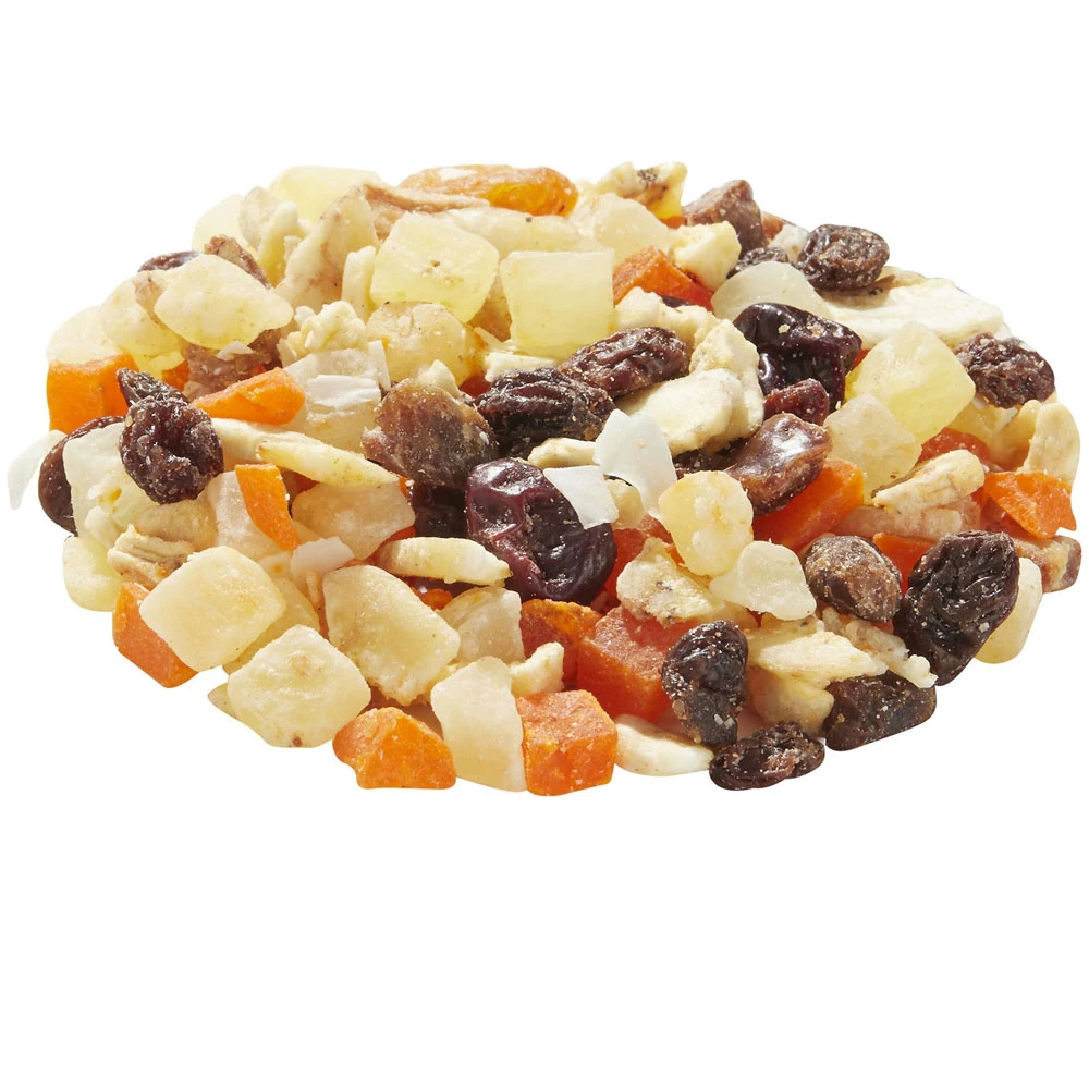 - Made with only simple ingredients birds love freeze-dried papaya, pineapple, raisins, bananas, coconut, dates, apricots, apples and cherries.