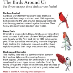This little Sunflower feeder is a great value, with long-lasting quality construction. The top and bottom are made with a durable powder-coated finish, and the tube is made of a fine metal mesh screen material. With the open air flow of the mesh screen, combined with drainage holes in the seed tray and a metal lid, your birdseed stays dry & fresh. The easy-open top makes it simple to clean and to fill, and the feeder comes fully assembled & ready to fill with up to 3/4 lb. of Black Oil Sunflower Seed.