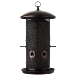 seed compartments, you can offer two seed types simultaneously to attract more birds. Built-in drainage holes help to