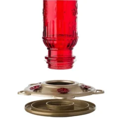 Hummingbird Feeder! The Vintage features a glass nectar bottle and a durable metal basin cap with 5 integrated