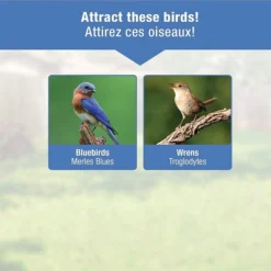Simultaneously feed a combination of mealworms or seed and fruit or suet options to serve up a variety for your birds! This feeder comes with a clear protective baffle that can be assembled to the hanger to better shield the feeder from weather while maintaining optimal bird viewing. A continuous ring allows for optimal perching space for multiple birds. Offer mealworms, suet balls, fruit slices, dried fruit, black oil sunflower, hulled sunflower, or mixed seed to attract bluebirds, wrens & more.