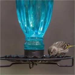 18 oz Capacity & Circular Perch—The brushed nickel base features a circular wrap-around perch so birds can comfortably sit and drink from anywhere they choose. With a 18 oz water capacity, you will have plenty of room for bird visitors stopping by for a drink! Use the attached metal hanger to place your waterer near your other bird feeders, so birds can easily locate the fresh water source.