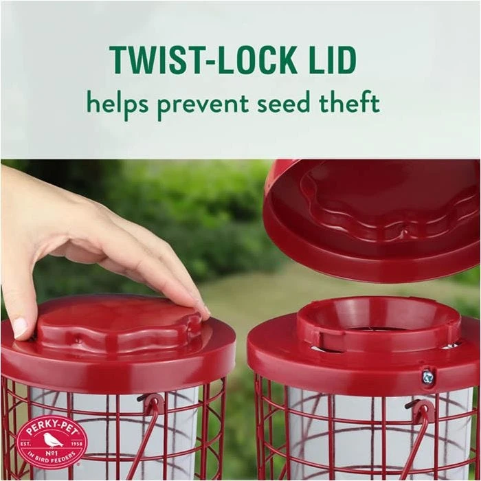 The Perky-PetĀ® Squirrel Resistant Easy Feeder features a wire barrier that protects against squirrel damage and holds 4 lb of seed. Easy filling and cleaning! Easy-to-use design will not harm tree branches.