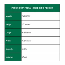 The Perky-PetĀ® Farmhouse Bird Feeder brings superior durability to your bird-feeding routine ā itās all metal. The feederās powder-coated finish is resistant to rust, while the sturdy metal construction will help prevent damage by squirrels. You can be sure this feeder will be a focal point in your backyard for many years to come!