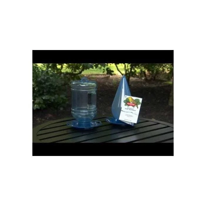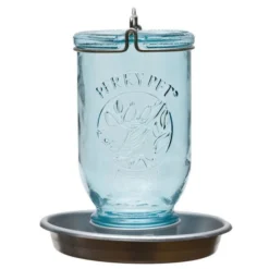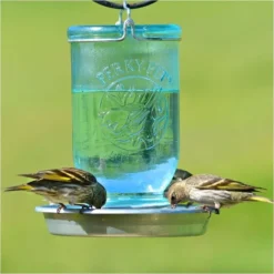 The Perky-PetĀ® Mason Jar Wild Bird Waterer offers fresh, clean water to attract a larger variety of birds while adding a rustic look to any bird loverās yard. The blue color of this bottle is reminiscent of vintage blue glass canning jars used in the 1800’s.