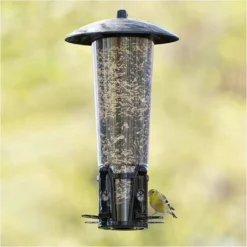 Offering maximum protection against squirrels and maximum comfort for your favorite birds, the Perky-Pet® Squirrel-Be-Gone® Max Bird Feeder with Flexports® is the feeder you’ve been searching for. To offer defense against squirrels, this feeder offers a Sure-Lock™ cap and a weight-activated Seed Shield™ so squirrels can’t gain access to the seed supply. In addition to its squirrel proof features, the Squirrel-Be-Gone® Max is also a favorite of birds. It also includes four feeding stations with our patented Flexports®, which offer 5-in-1 benefits for birds and you. With its rustic powder coating, this feeder will make a charming addition in any backyard setting.