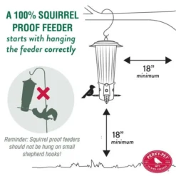 To ensure a 100% squirrel proof feeder, placement is key! Hang the feeder with at least 18 inches of clearance on all sides so squirrels can’t easily reach the ports without activating the Seed Shield.
