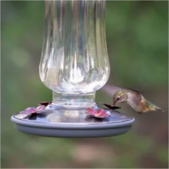 This unique Perky-Pet® Starglow Vintage Hummingbird Feeder will attract hummingbirds and add a vintage touch to any outdoor living space. The gorgeous clear luster finish glass design works as a functional accent piece and complements the most modern chic outdoor décor. The feeder features a wide mouth opening for easy filling and cleaning, four flower-shaped feeding ports and a 16 oz nectar capacity to keep your hummingbirds well fed.