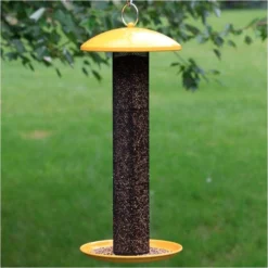 The Perky-PetĀ® Yellow Straight-Sided Finch Feeder stands for durability. It has no wood and no plastic ā itās all metal! The wire mesh design features a powder-coated finish to resist rust, while the sturdy metal construction will help thwart squirrel damage. You can be sure this feeder will be a focal point in your backyard for many years to come!