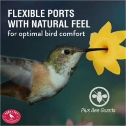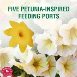 Hummingbirds are accustomed to imbibing nectar from flowers. Thatās why weāve developed this feeder with soft, flexible feeding ports inspired by petunias to offer a more natural look and feel. The vibrant color and realistic flower shape are perfect for attracting hummers, while the five ports ensure thereās enough room for multiple birds to dine simultaneously.