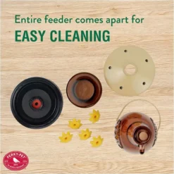 Hummingbirds prefer to visit fresh, clean feeding stations. To make that easier, this feeder disassembles for effortless cleaning. Easily separate the base, bottle and lid. You can even pull apart the base and remove the feeding ports! Remember to clean your feeder at least once per week with a mild soap and water solution to prevent mildew buildup; clean more often in hot weather.