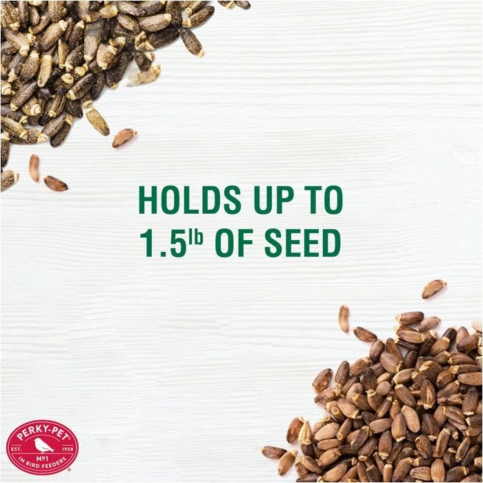 The Perky-Pet® Upside Down® Feeder is able to hold up to 2 pounds of thistle seed or finch mix so there’s plenty for your hungry backyard goldfinches. The clear plastic reservoir allows you to easily monitor seed levels at a glance. When it’s time to refill, simply slide the cap up along the hanging bail to access the feeder tube.