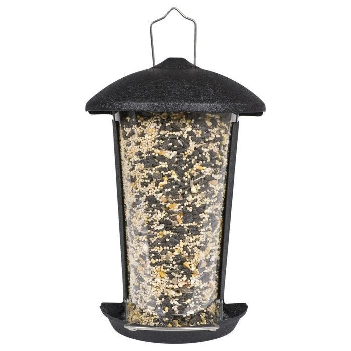 The clear plastic reservoir makes it easy to monitor seed levels and detaches easily from the feeder base for quick cleaning and filling.