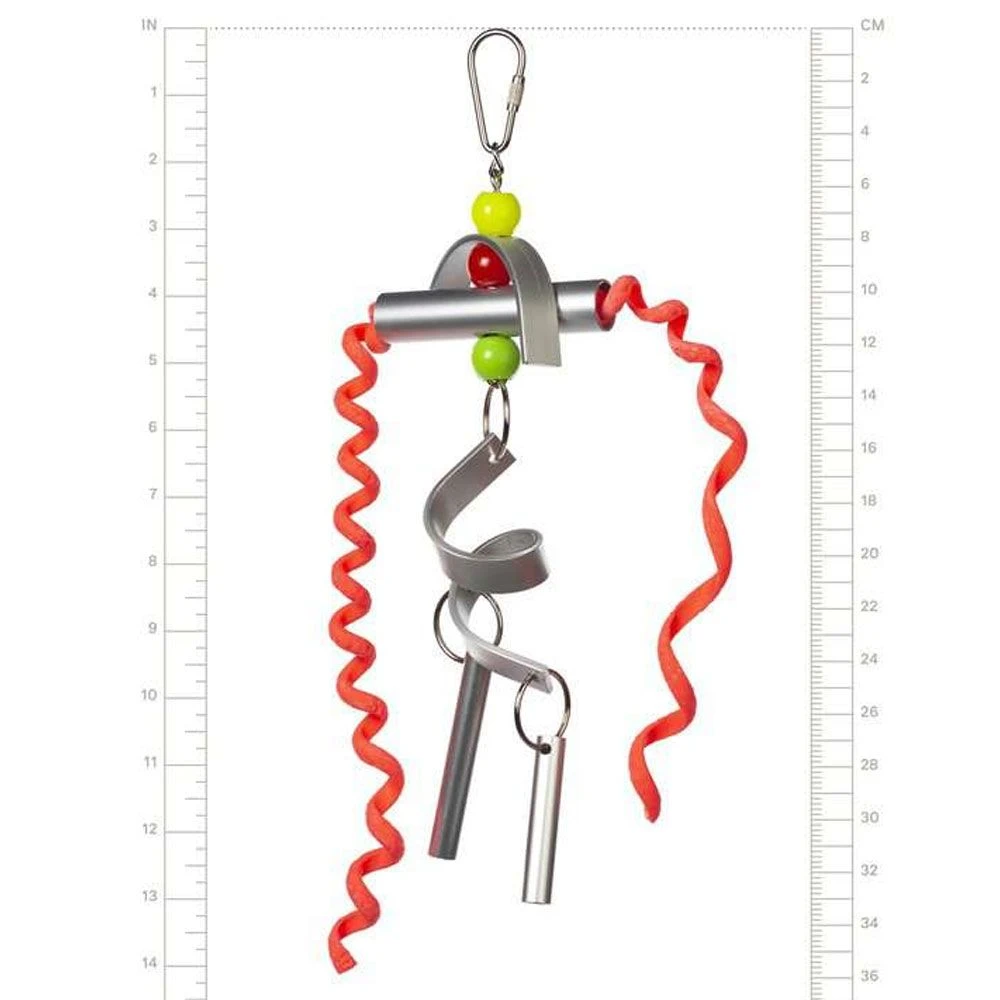 Prevue Chime Time Tornado Bird Toy will stimulate your bird’s senses with delightful sounds and bright colors. Indestructible wind chime style toys will keep your bird entertained for hours with aluminum chimes decorated with beads, rubber rings and calcium wafers. All materials are 100-percent safe and non-toxic. Toy connects easily to cage with quick-link attachment and actual measurements may vary slightly. As always, supervise birds at play. Our Tornado 62154 bird toy is approximately 3″ Wide and 10-½” High, ideal for small to medium sized birds.