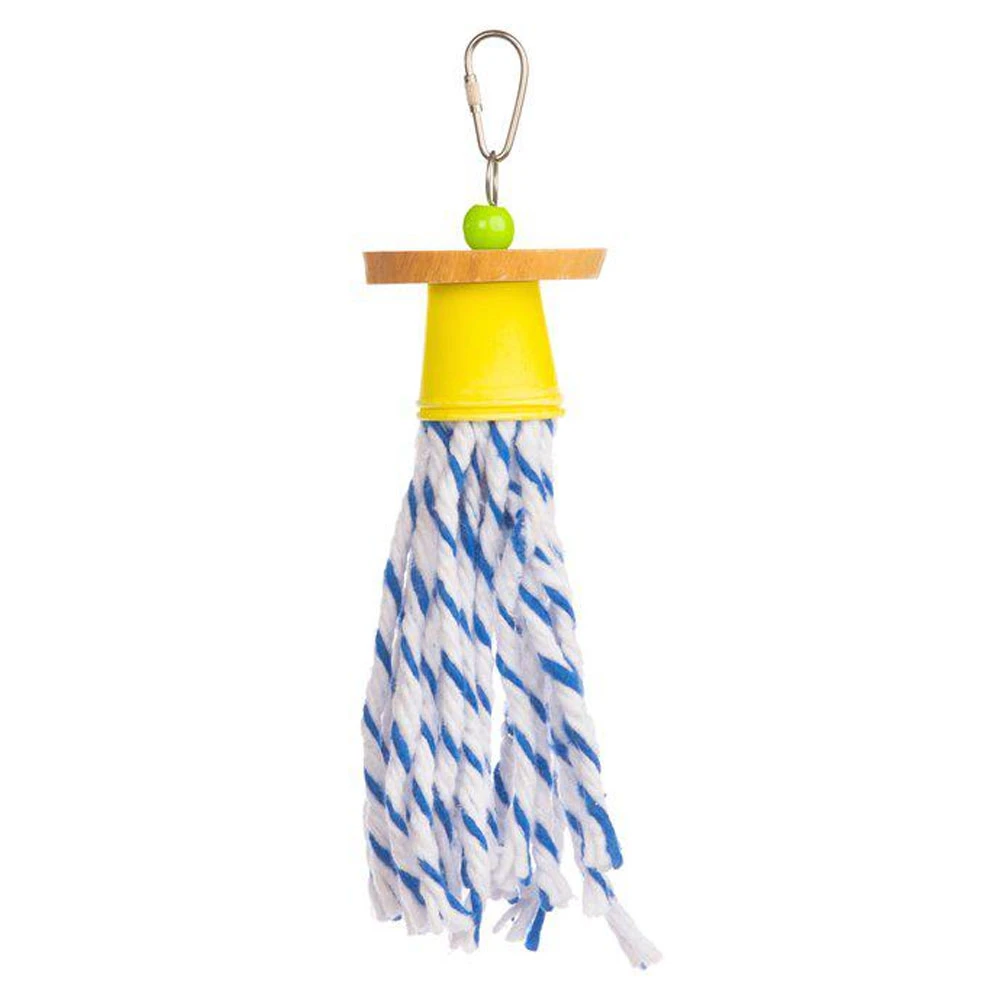 - Dangling cotton ropes and paper cups provide your bird with mental stimulation and hours of fun