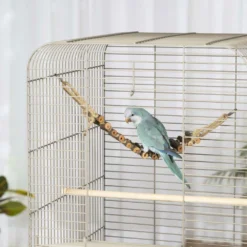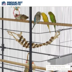 Prevue Naturals Rope Ladder Bird Toy offers the capacity for rugged physical play and mental stimulation, and the irregular shapes of the branches encourage healthy foot exercise. The ladder is handmade and contains 13 natural wood rungs, varing in length between 11″ – 13″ lengths, depending on the thickness of the wood. The overall length [including rope and quick links] can vary between 17″ – 20″. Materials include sustainably-harvested Hevea wood branches and natural jute rope. Toy connects easily to cage wire with quick-link attachments. As always, supervise birds at play. Ideal for Small to Medium-sized birds.