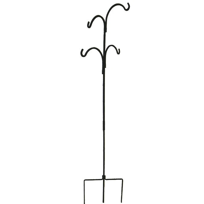 Attractive and functional, this massive shepherd’s hook is ideal for hanging several plants, birdfeeders, seasonal & garden decorations, or a combination of items. It features 4 heavy-duty hooks that turn up at the ends for secure hanging. Thick, 5/8″ squared stock with a black powder coated protective finish means this hook is strong enough to endure season after season.