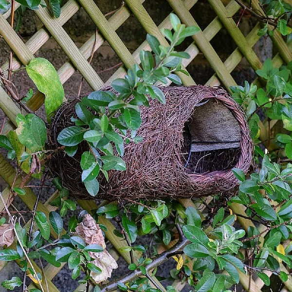 - It’s a lightweight nester which can be wired into a hedge or ivy or attached to a wall using the supplied spare loop of fixing wire