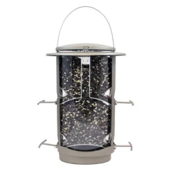 built to resist squirrel chewing. Its large, 4.2 lb seed capacity lasts longer between refillings, and the